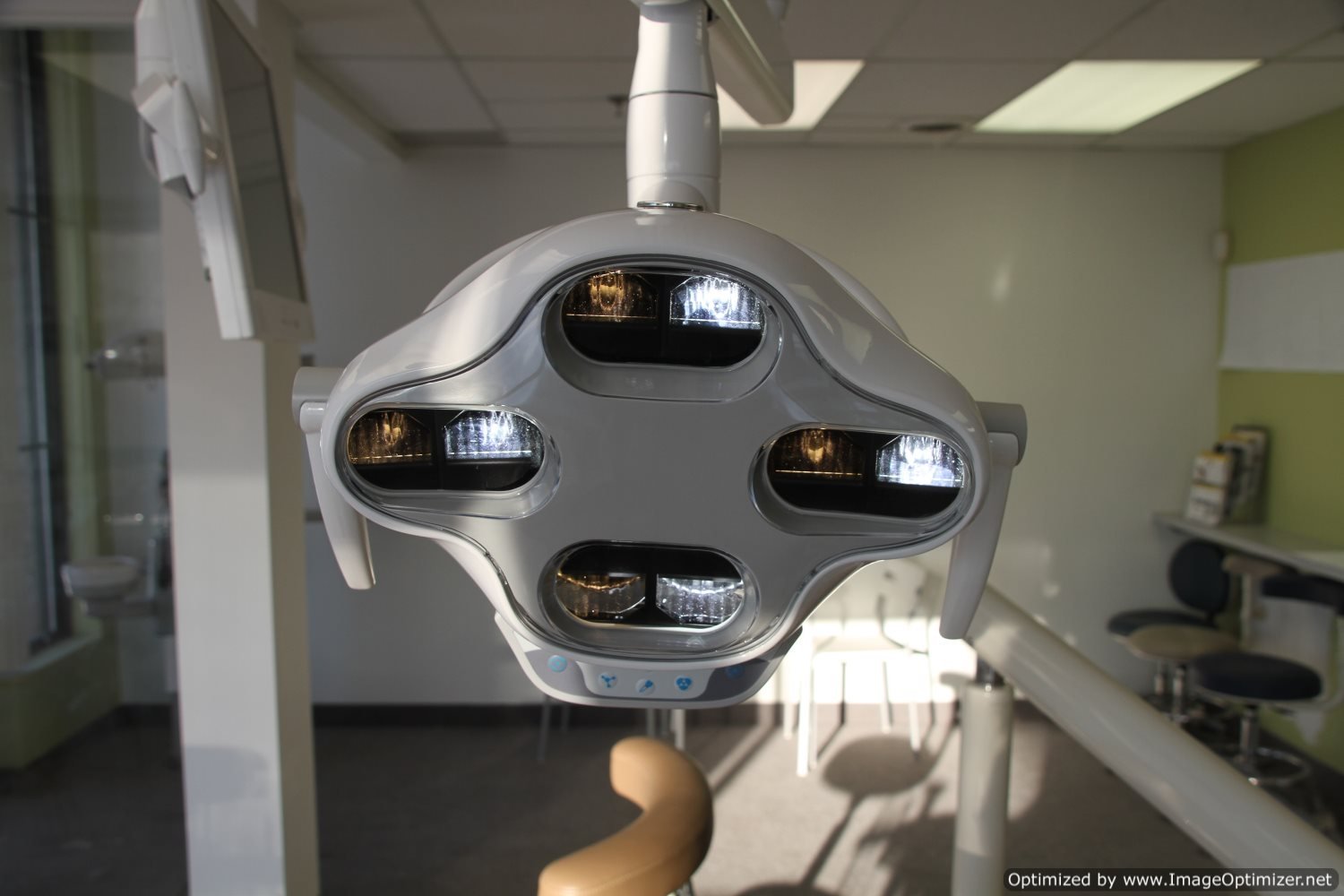 The IRIS ® LED light is the only LED light used in dental applications with the technology to adjust the color temperature from 4.200-6.000 Kelvin and light intensity from 8.000-35.000 lux. Recent studies have shown that by adjusting the color temperature in surgical procedures, it can increase concentration and contrast between different soft tissues. In addition, the absence of UV (Ultra Violet) and IR (Infrared) radiation has shown to increase patient and operator comfort. The life expectancy of our LEDs are about 50.000 hours compared to a good halogen bulb which last between 3000-5000 hours.