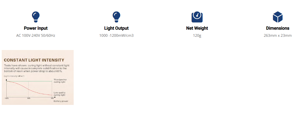 The X-CURE curing light is a feature packed curing light that offers all the different modes and settings that you need to complete your procedures. X-CURE comes with 3 modes of operation with a ramp mode, fast mode, and pulse mode for use with various techniques and materials. The curing light can also adjust time settings from 5, 10, 15, and 20 seconds for the curing time. This high power curing light can allow you to complete the curing process in a very short time compared to older curing lights. It also has an ergonomic handle which puts less strain on your hand, in addition the easy to use buttons and controls makes the X-CURE the easiest curing light to use on the market. It provides great curing depth in minimal time and cures all different types of materials.